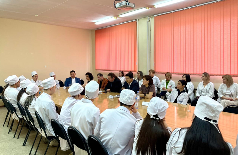 On April 23, 2025, the Language Development Center of Karaganda Medical University hosted a roundtable discussion on the topic of "Saryarka: 75 Years of Karaganda Medical University" with participation by first and second-year students. The event was organized by teachers G.K. Massabayeva, D.R. Suleymenova, A.S. Kelmaganbetova, M.E. Tynymbayeva, and N.B. Omarbek. The honored guests at the roundtable discussion included Doctor of Medical Sciences, Professor Maida Maskhapovna Tussupbekova; Head of the Languages Development Center, Candidate of Philological Sciences Marina Abilzhanovna Maretbayeva; Acting Chief Medical Officer of the Medical University Clinic Semyon Sergeyevich Bobyrev; Deputy Head of the Center for Traumatology and Orthopedics named after Kh. Makazhanov, Doctor of Medical Sciences, Head of the Department of Surgical Diseases; Dean of the School of Pharmacy Yerbolat Abibillayevich Tulebayev; Director of the Institute of Life Sciences Dmitry Anatoliyevich Kluyev; Dean of the School of Public Health Zhaniya Abayevna Dauletkaliyeva.