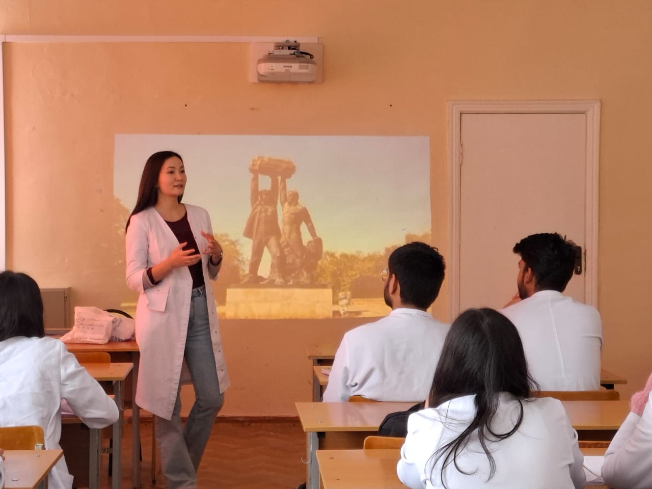 What do international students of Karaganda Medical University know about Karaganda? Interesting facts about the city’s history — these and many other questions served as the basis of an event organized by Assistant Professor of the Department at History of Kazakhstan and Social-Political Disciplines, Madina Bulatovna Ospanova, for students of the International Medical Faculty of Karaganda Medical University. The event was dedicated to the Birthday of Karaganda.