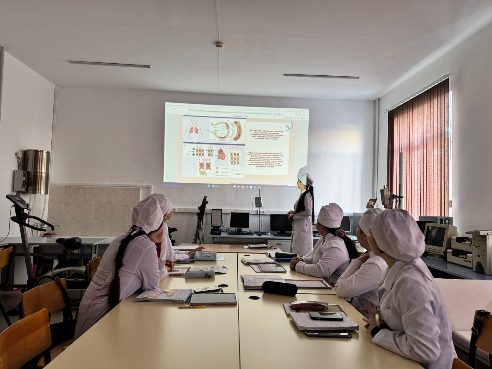 The promotion of a healthy lifestyle was highlighted as one of the key aspects of educational work with students. It was emphasized that the prevalence of respiratory, cardiovascular, blood, and endocrine system diseases among young people makes preventive activities especially important. During the session, risk factors, their negative impact on the body, preventive measures, and principles of early diagnosis were examined in detail. Students were also introduced to modern research and monitoring methods used for preventive and diagnostic purposes.