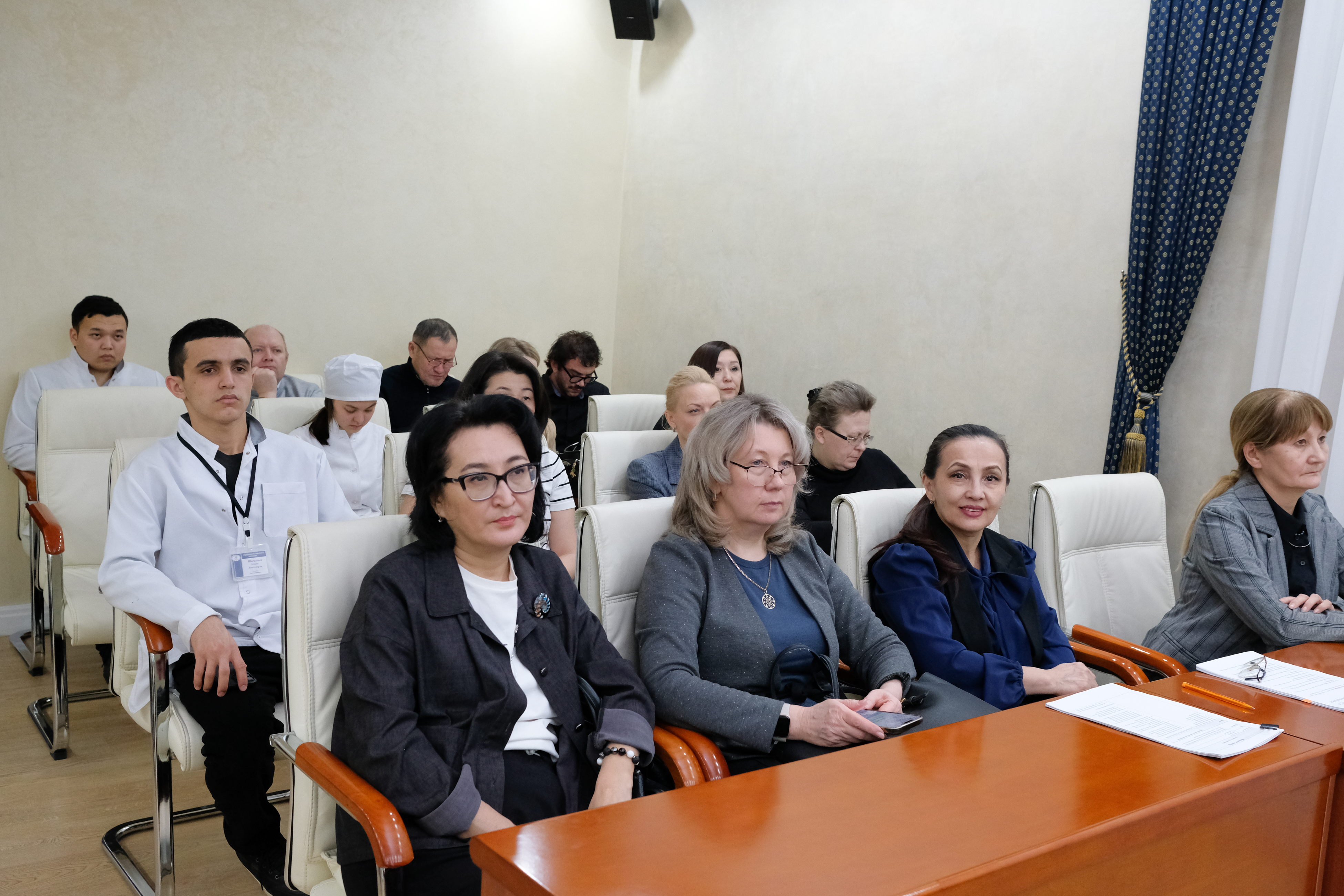Presentations were delivered by Vice-Rector for Academic and Social Work Zh.A. Dauletkaliyeva, Professor Emeritus from the School of Public Health V.N. Priz, Head of the Department of History of Kazakhstan and Social-Political Disciplines S.A. Nikiforova, and Associate Professor from the Department of History of Kazakhstan and Social-Political Disciplines B. Bitenova.