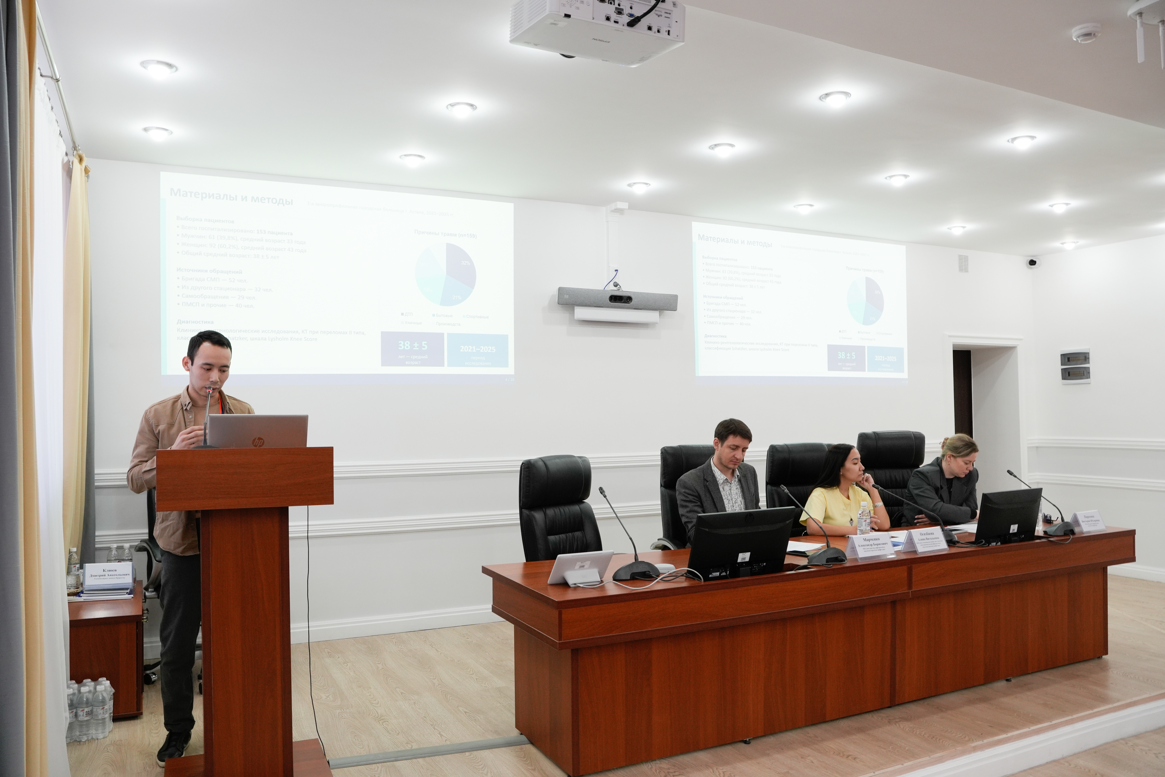 Пленарлық отырыста «Қарағанды медицина университеті» КеАҚ-ның ғылыми жұмыс жөніндегі проректоры Д.А. Клюев, Назарбаев Университеті School of Sciences and Humanities ассистент профессоры, McMaster University ғылыми қызметкері С.В. Егоров, «Қарағанды медицина университеті» КеАҚ стратегия, цифрландыру және интернационалдандыру жөніндегі проректоры В.П. Риклефс баяндамалар жасады. Баяндамаларда медициналық ғылым мен білім беру саласындағы іргелі және қолданбалы зерттеулердің өзекті мәселелері және медицинадағы ғылыми зерттеулердің маңызы қарастырылды.