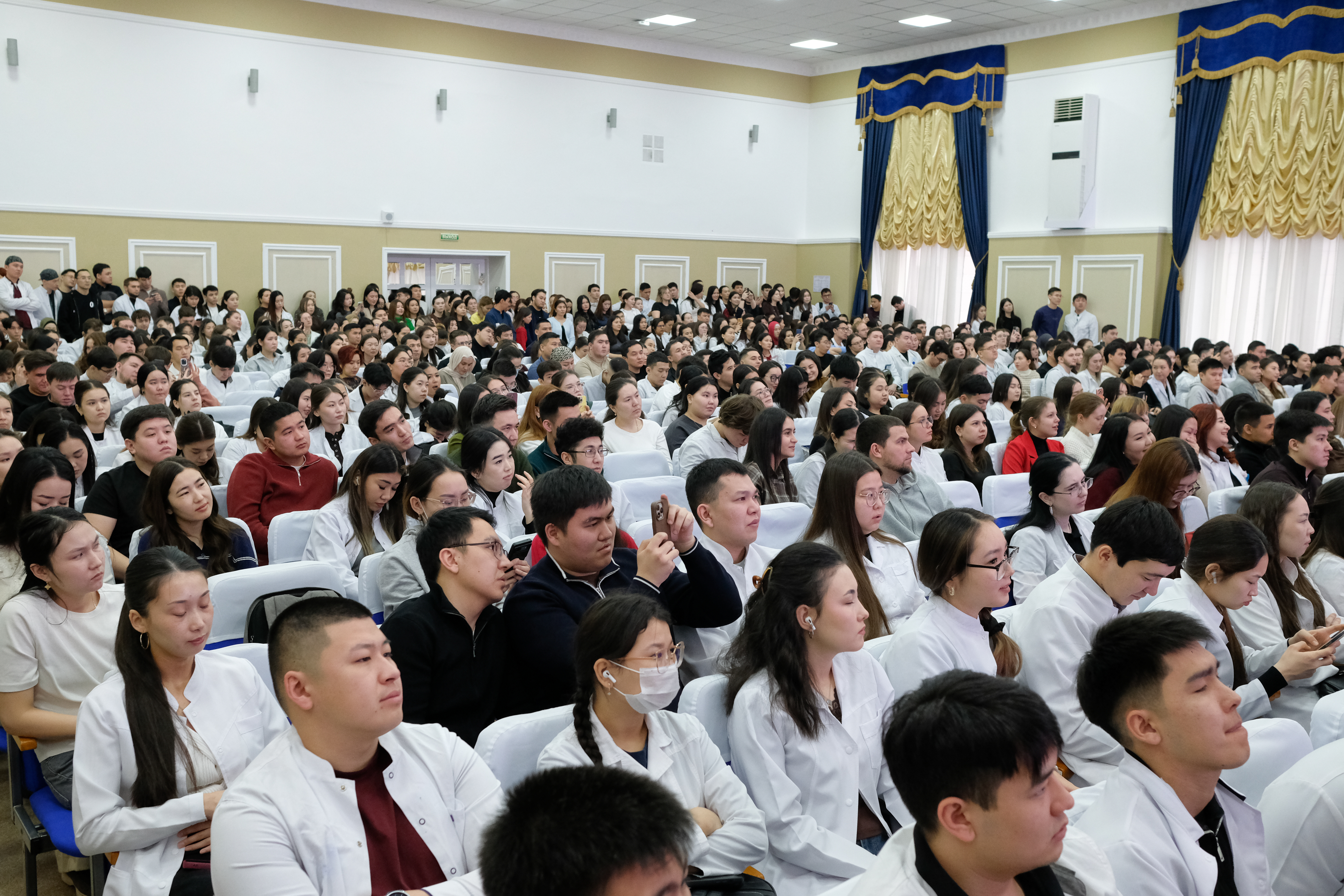 Университет әкімшілігі атынан құттықтау сөзді клиникалық жұмыс жөніндегі проректор Абатов Нұрқаси Төлепбергенұлы сөйледі. Ол өз сөзінде мамандық таңдаудың маңыздылығын атап өтіп, түлектердің жоғары деңгейде дайындалғанына сенім білдіріп, кәсіби жолдарының сәтті басталуына тілектестік білдірді.