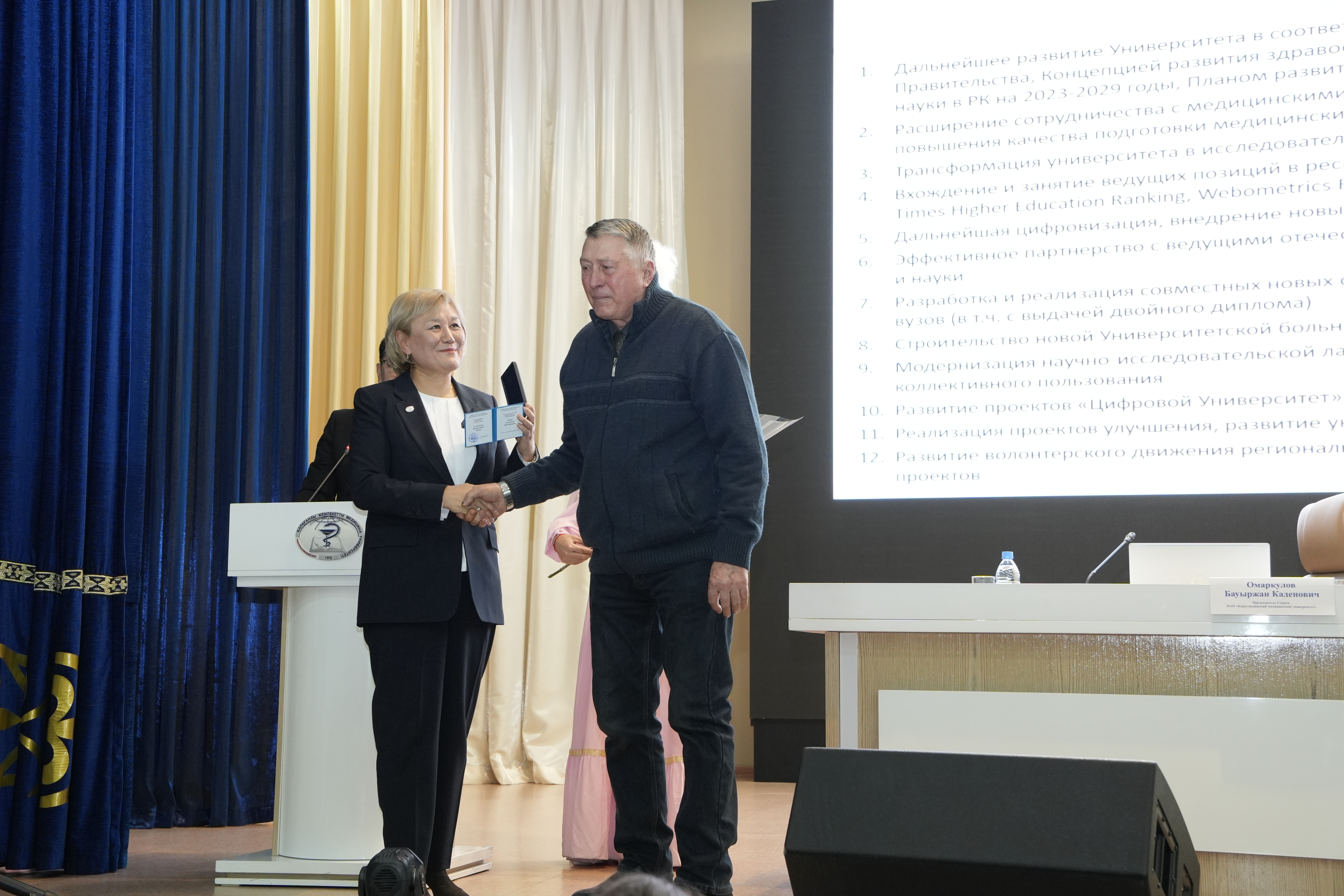 В ходе заседания ученого совета НАО «КМУ» сотрудникам университета вручены ведомственные награды. Медалью «Еңбек ардагері» награждены: