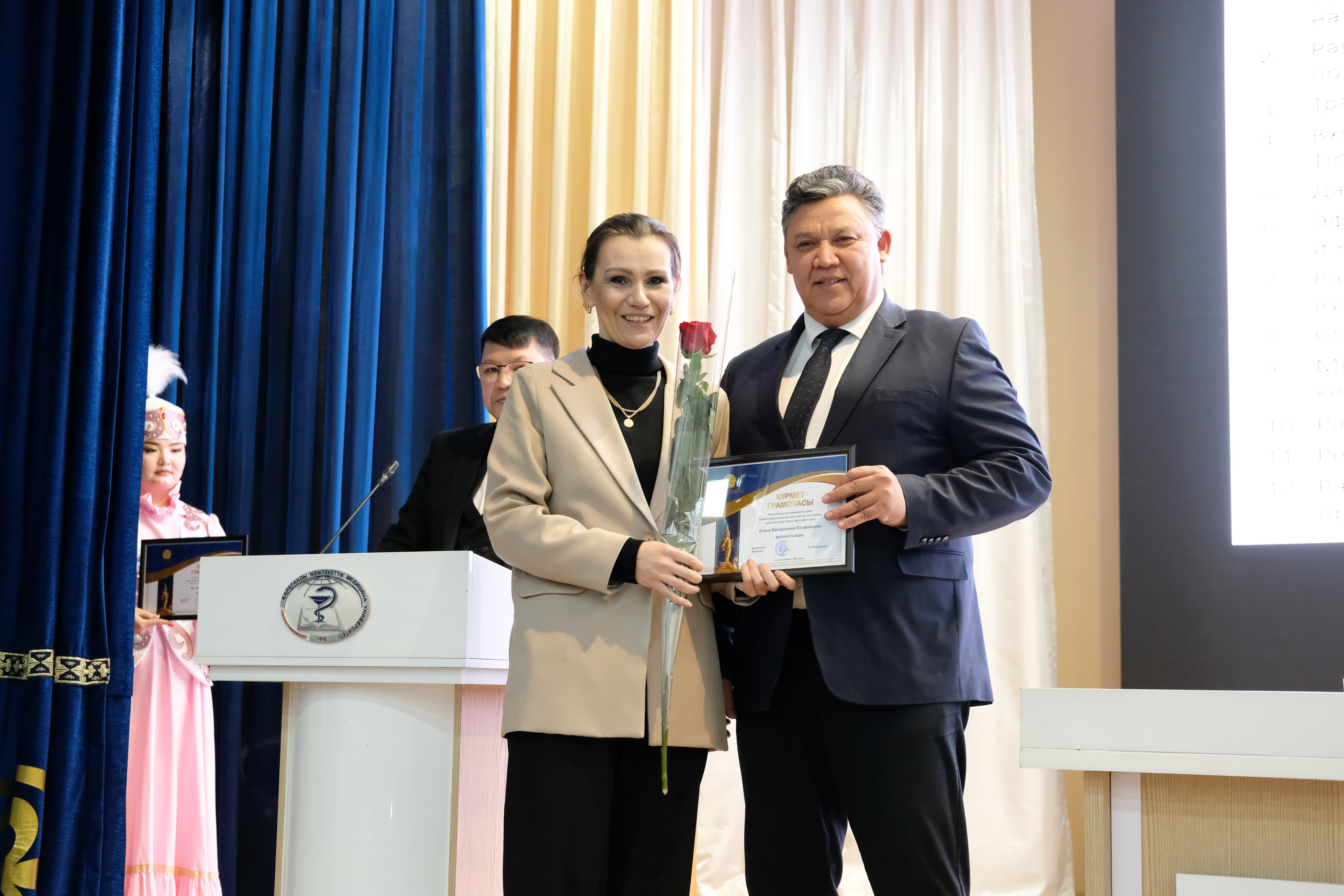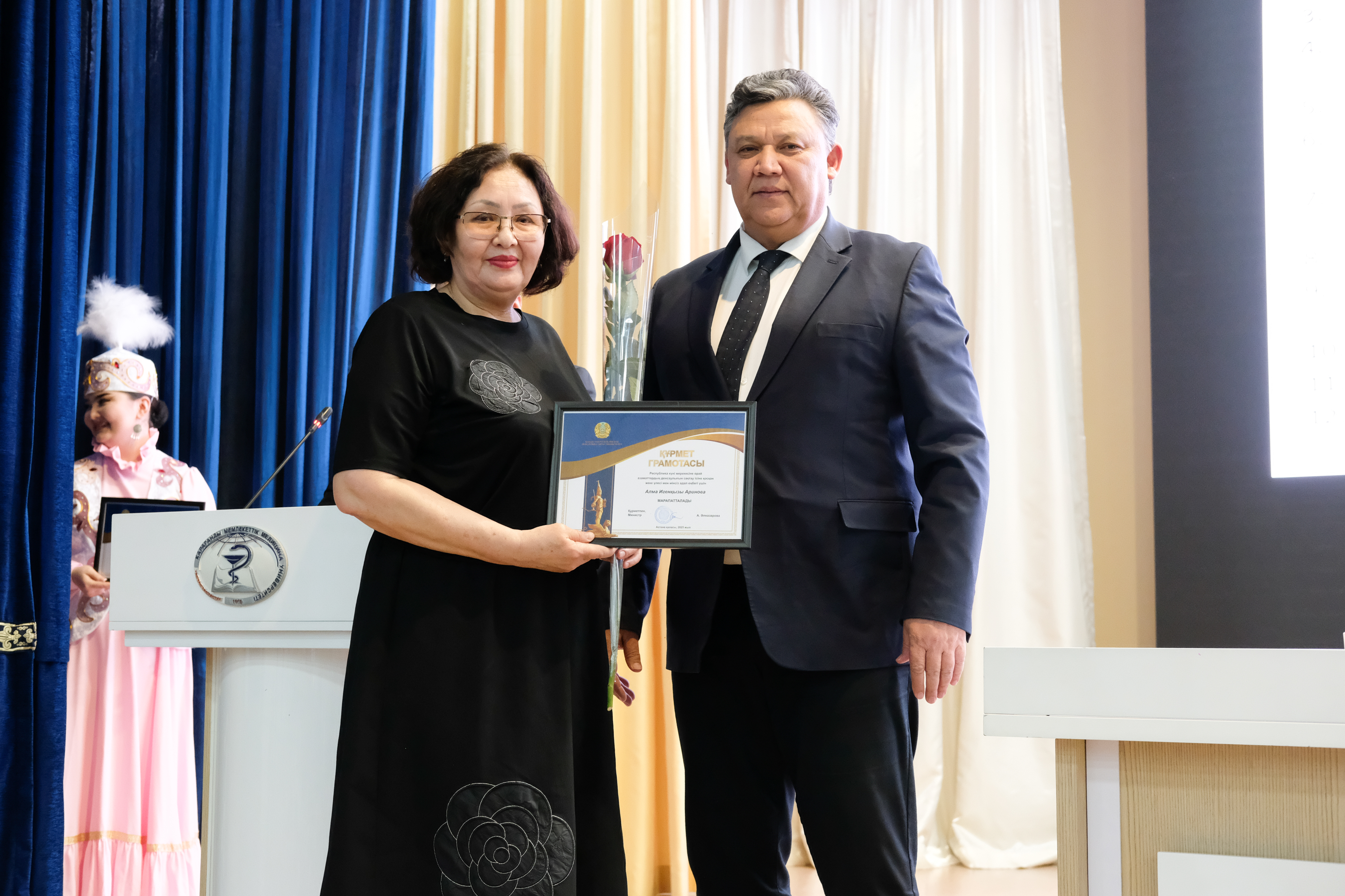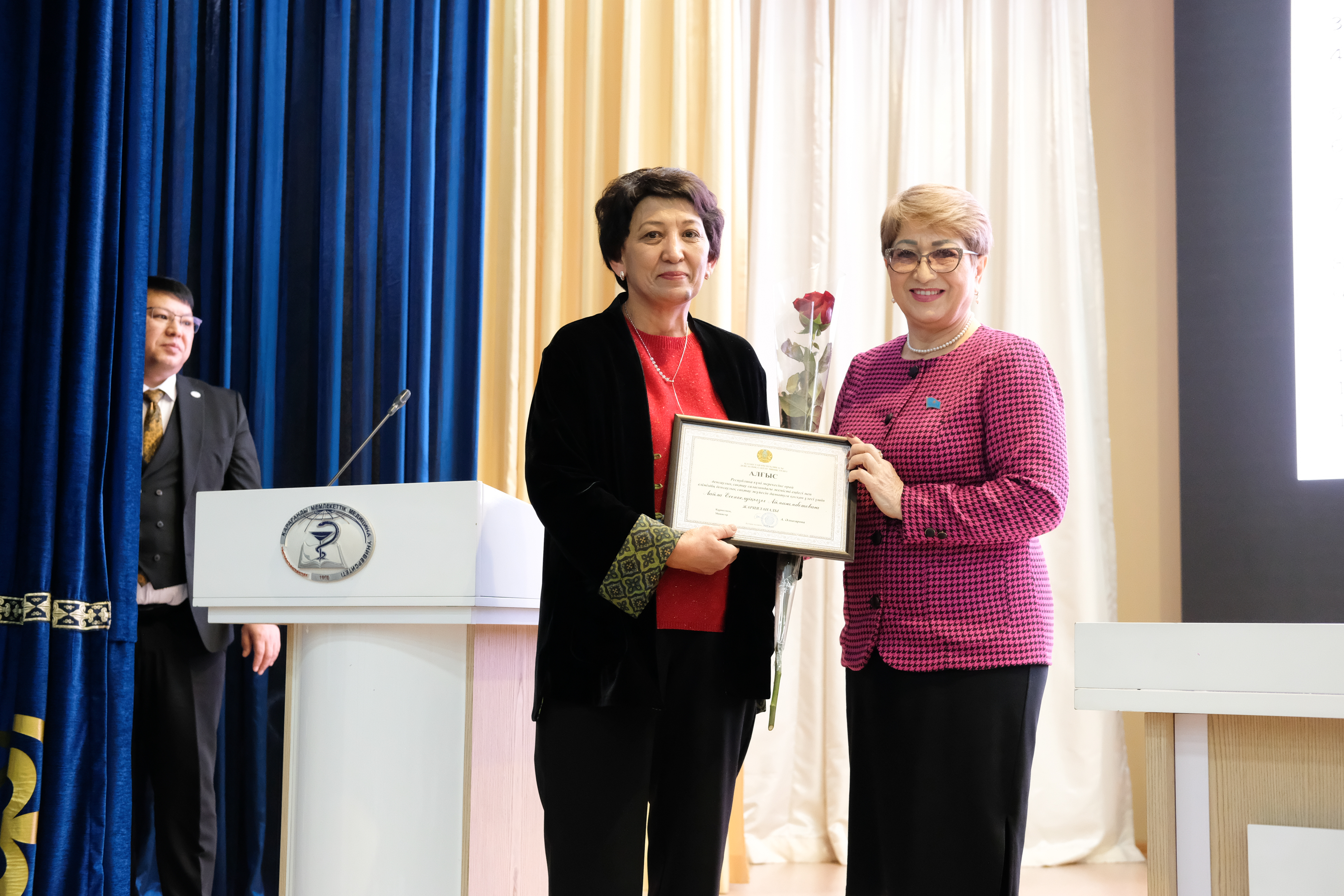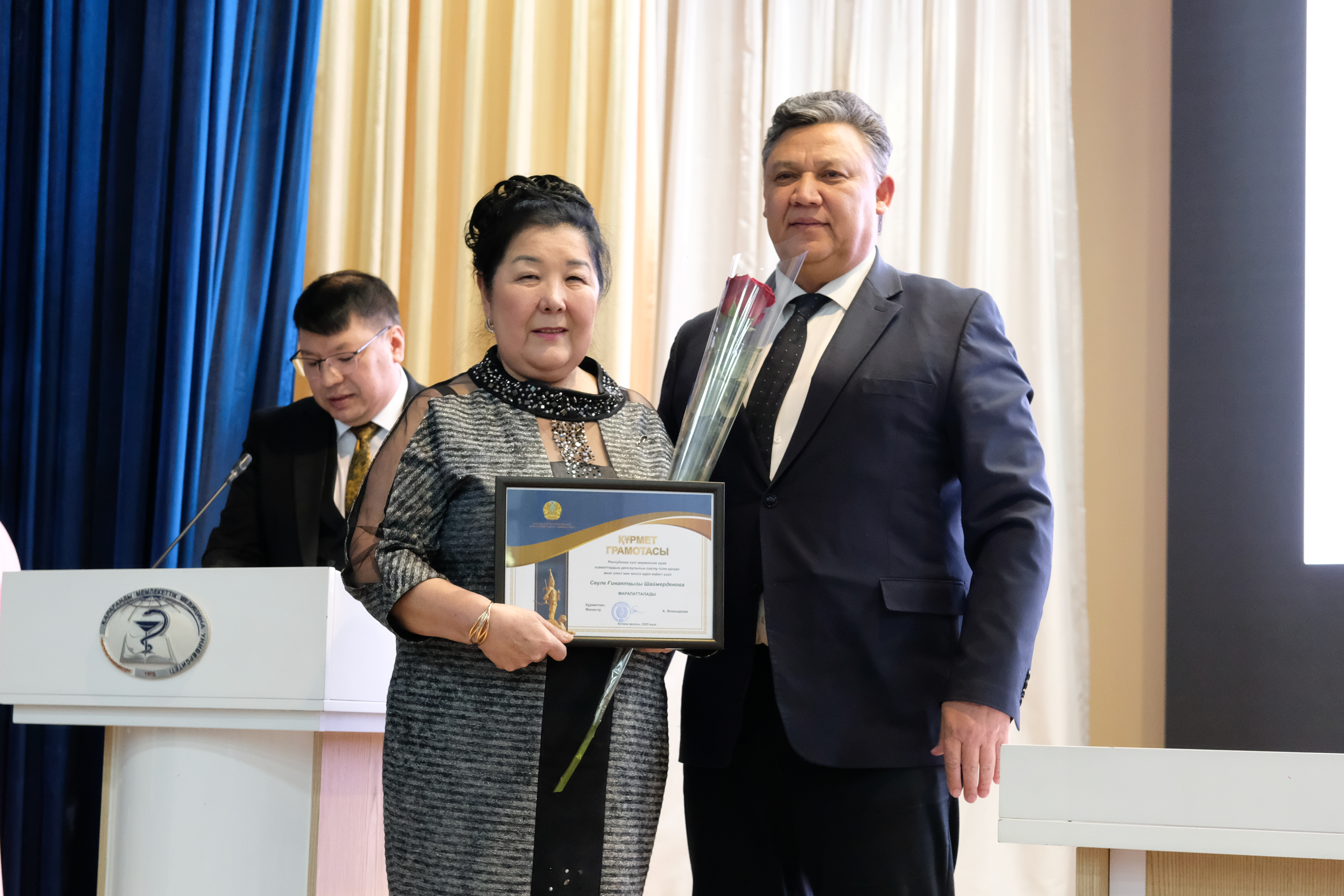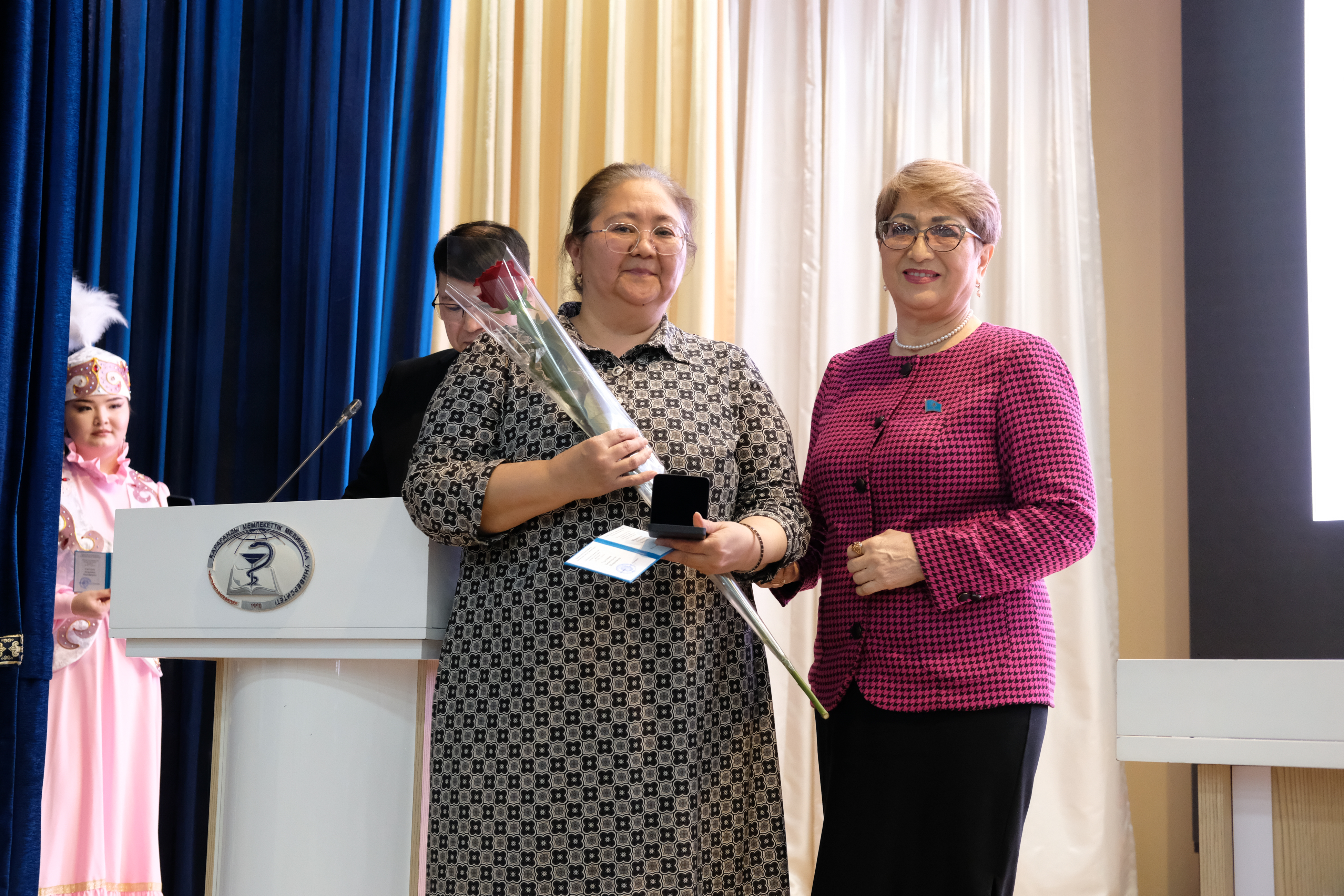 2. Шарапиева Сулушаш Бекетовна, директор департамента академической работы - нагрудной знак «Денсаулық сақтау ісіне қосқан үлесі үшін»;