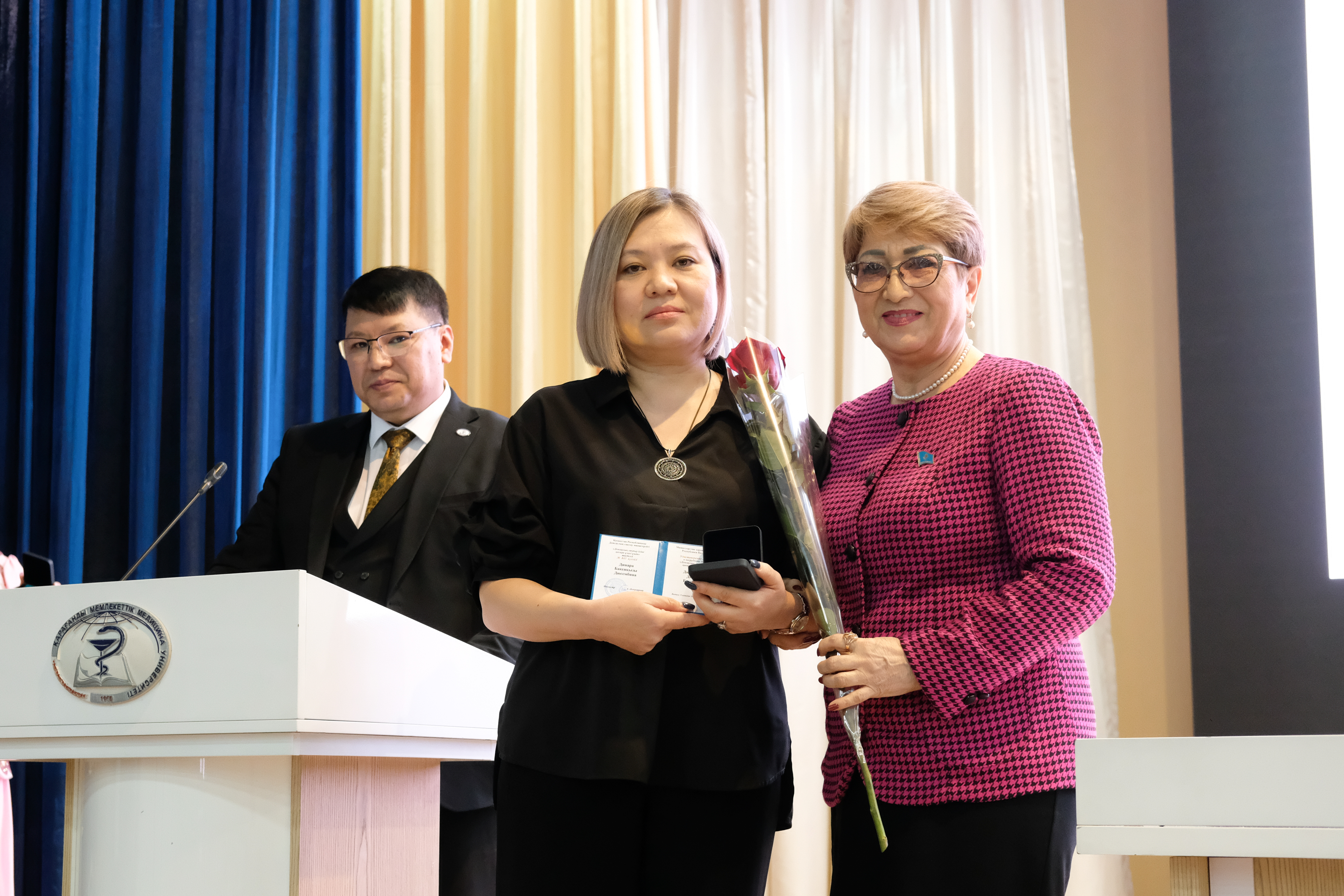 3. Никифорова Светлана Андреевна, заведующая кафедрой истории Казахстана и социально-политических дисциплин, нагрудной знак «Денсаулық сақтау ісіне қосқан үлесі үшін»;