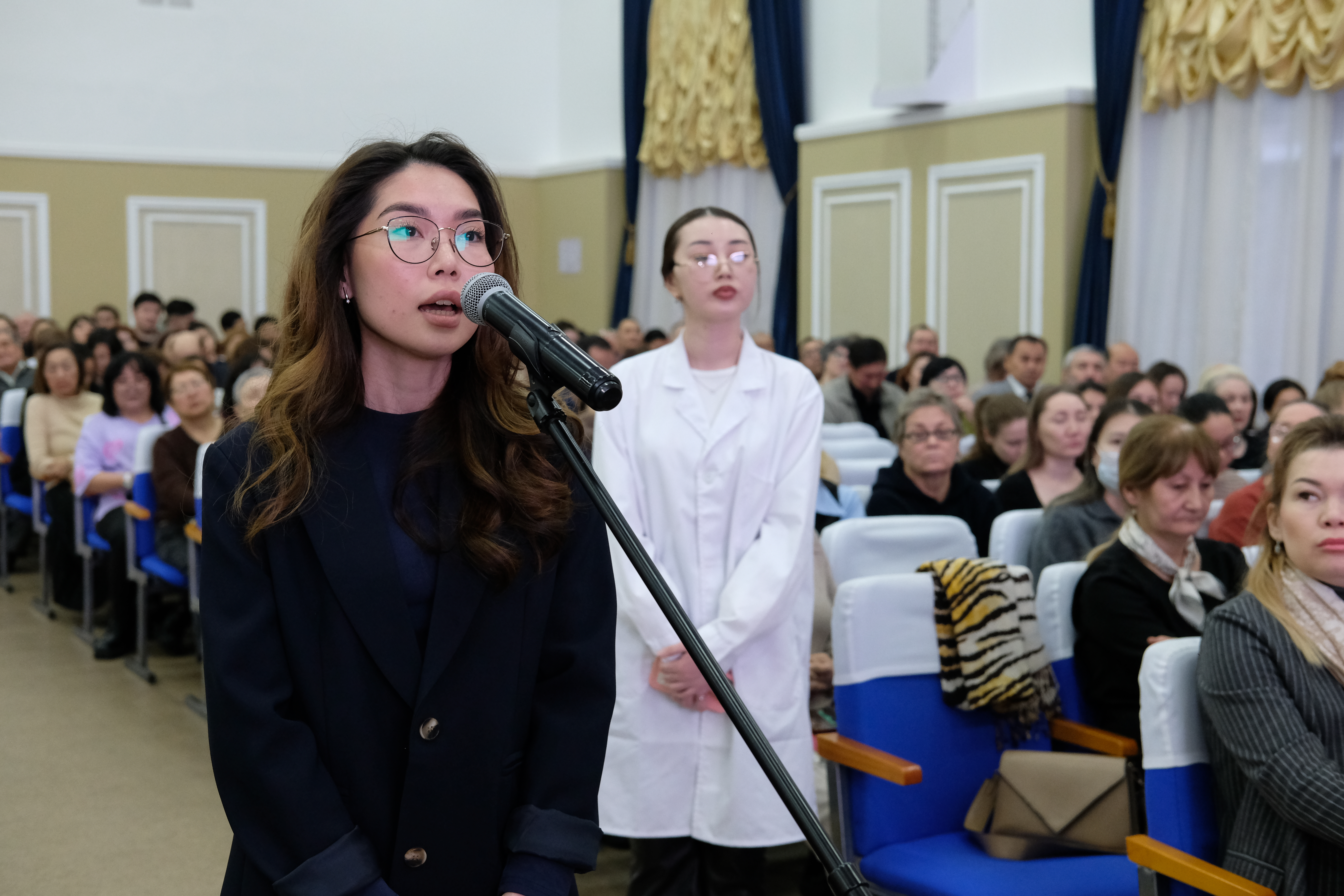 25.12.2025 г. Председатель Правления – Ректор НАО «КМУ» Бахыт Нургалиевна Кошерова выступила с отчетом о деятельности университета за 2025 г. перед общественностью. В отчете были отражены академические, научно-исследовательские, клинические, финансово-хозяйственные показатели. Также Председатель Правления – Ректор озвучила планы на предстоящий год.